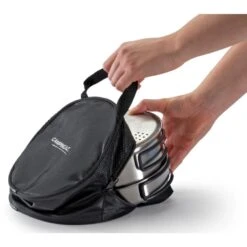 Save space by using this set thats stacks neatly and then pop into its very own carry bag for convenience making it ideal even for backpackers! A lightweight and compact set perfect for all your outdoor cookingÂ