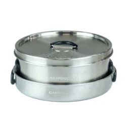 Save space by using this set thats stacks neatly, simply put the pot inside the pan, and then place this into its very own carry bag for convenience, making it ideal for trekkers and backpackers! A lightweight and compact set perfect for all your outdoor cooking.
