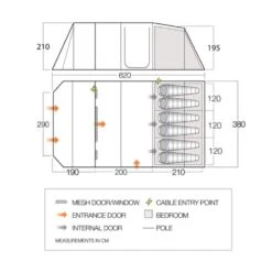 The Whitby 600 is a 6-man poled tent, perfect for spending quality time with family and friends. This tent is durable and highly waterproof and designed using Vango’s Sentinel Active fabric. The pre-attached front awning is perfect for socialising alongside the large internal living area. Diamond Clear windows allow for a bright and airy environment whilst a great night’s sleep is guaranteed with our Lights-Out Inners. 2 large doors with a mesh front layer allow for increased ventilation and ease of access to the tent.Â